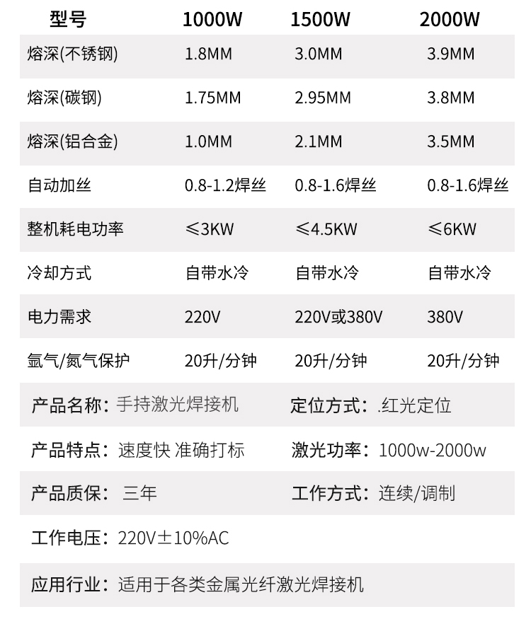 规格 1000W/1500W/2000W